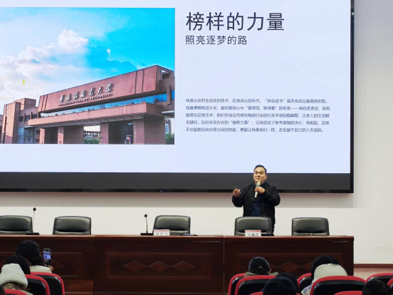 12月24日下午,2001级英语专业校友、佛山市嘉尼亚陶瓷有限公司创始人吕思安做客我校广雅鳣堂作题为《心怀梦想,砥砺前行》的专题讲座。本次活动由党委学生工作部(党委研究生工作部、学生工作处)与校友联络服务中心共同主办、文化传播学院承办,200余名师生代表到场聆听。