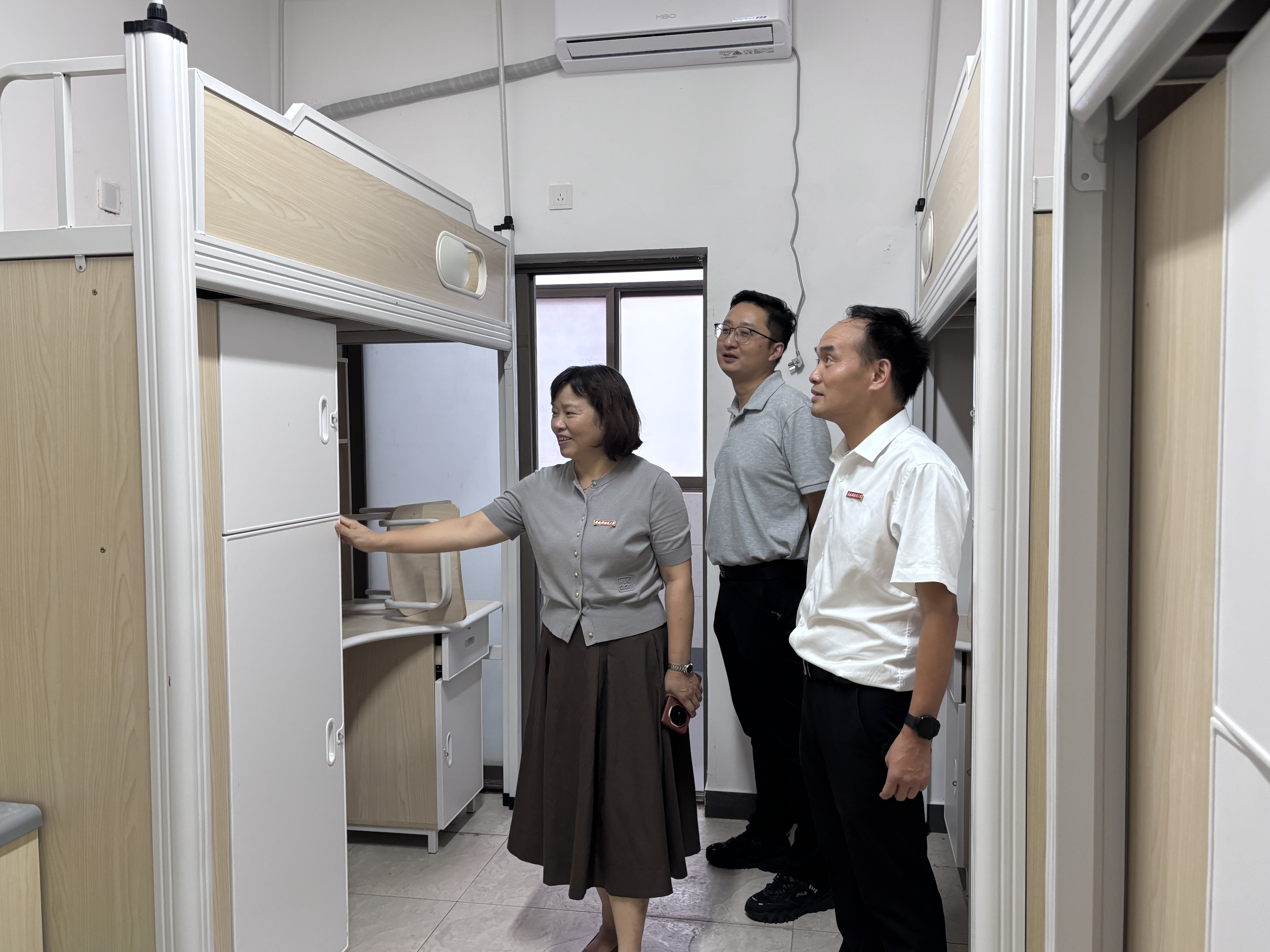 在走访过程中,胡银娇一行还就施工现场安全问题、新生宿舍整备等工作进行重点检查。